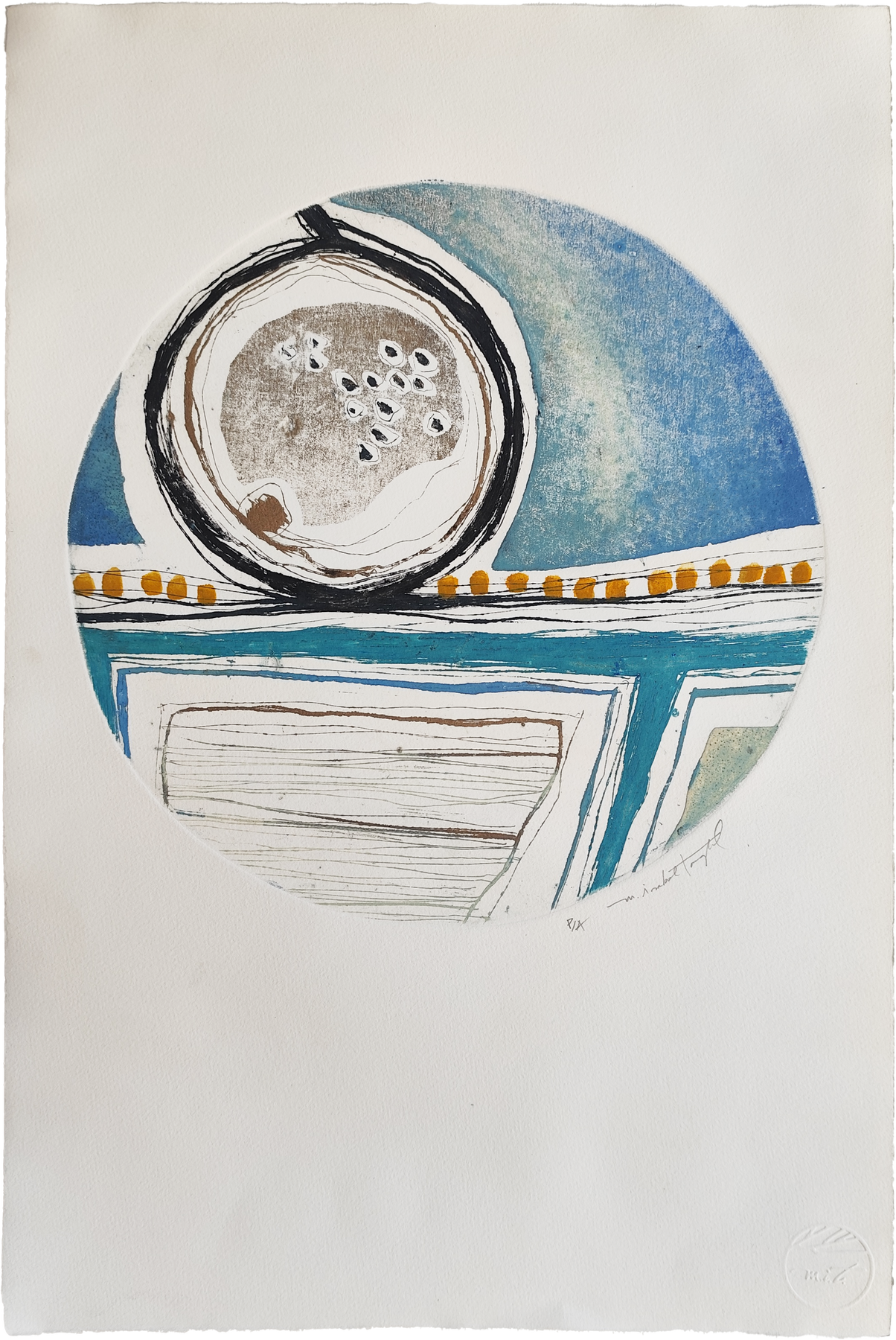 Obras inspiradas en la naturaleza, realizadas sobre papel de algodón con tecnica mixta: Grabado en metal, aguafuente, aguantina y linografía. Artista: Isabel Tagle