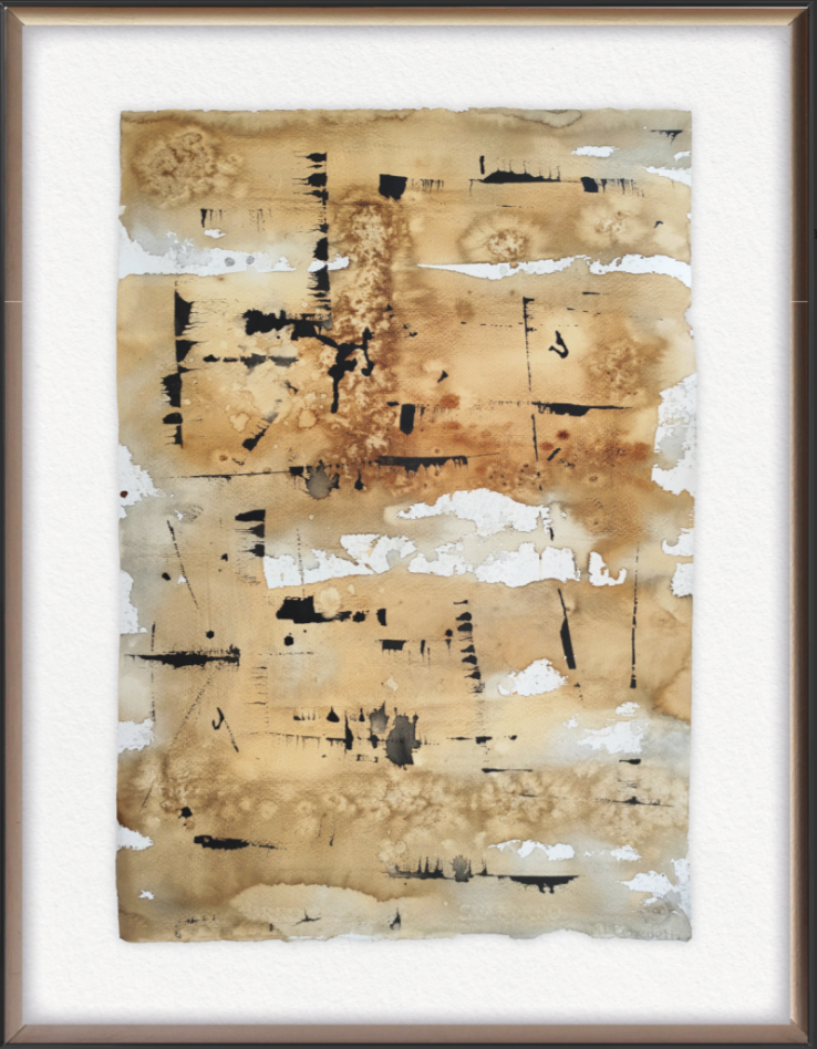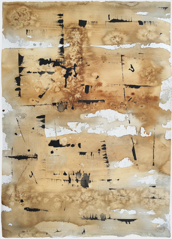 Obras abstractas inspiradas en la naturaleza con tecnicas mixtas –tintas y acrílicos– sobre papel de algodon. El resultdo es fruto de la permanente experimentación y la riqueza de sus hallazgos.