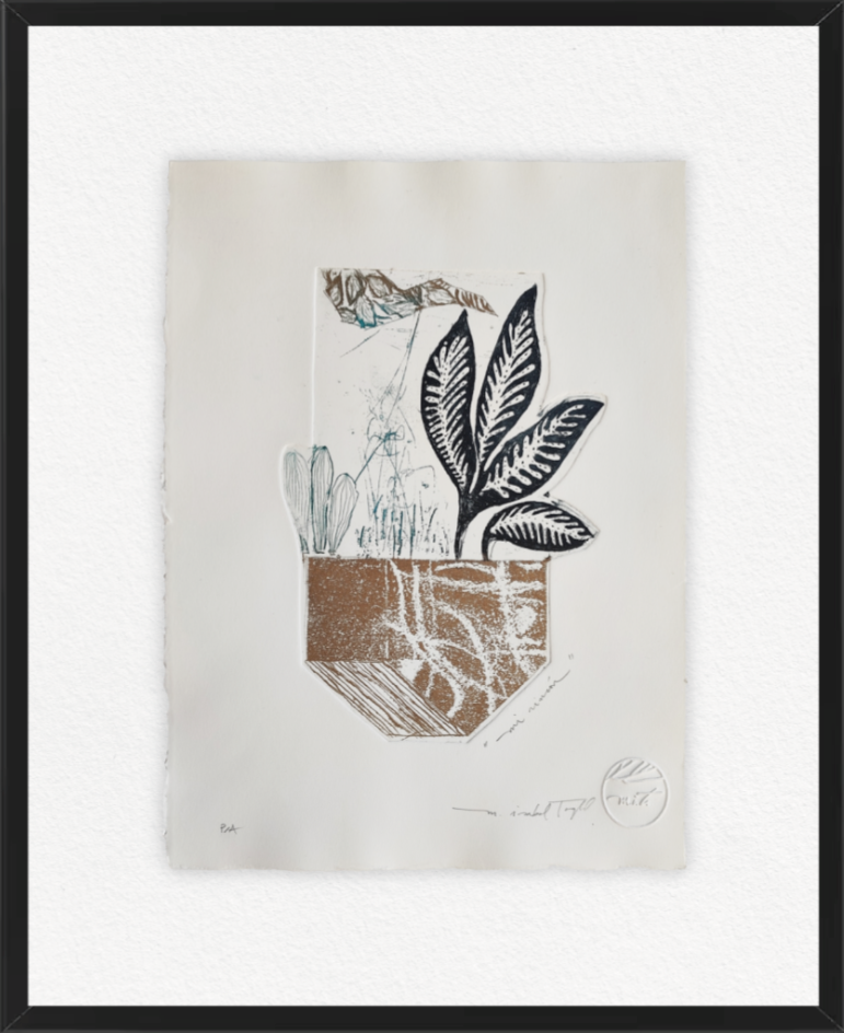 Obras inspiradas en la naturaleza, realizadas sobre papel de algodón con tecnica mixta: Grabado en metal, aguafuente, aguantina y linografía.